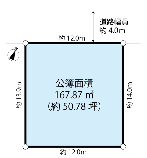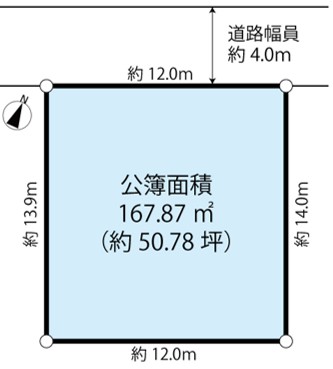 | 地目 | 宅地 | 接道状況 | 一方(北西 公道 4.0m 間口12m ) |