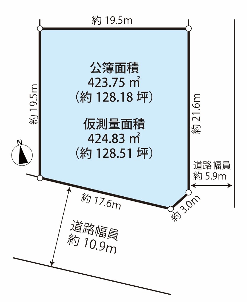 地目宅地接道状況二方(角地)(南 公道 10.9m 間口17.6m 東 公道 5.9m 間口21.6m )