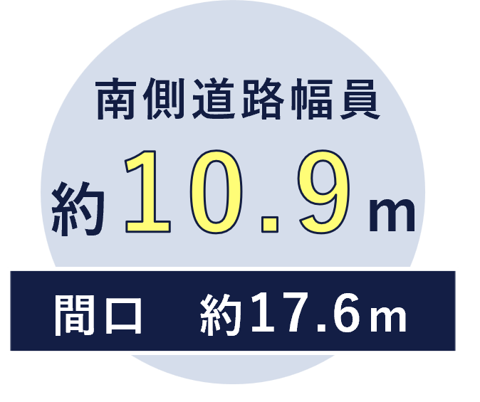 《 前面道路広々 》南側幅員10.9m・東側幅員5.9m