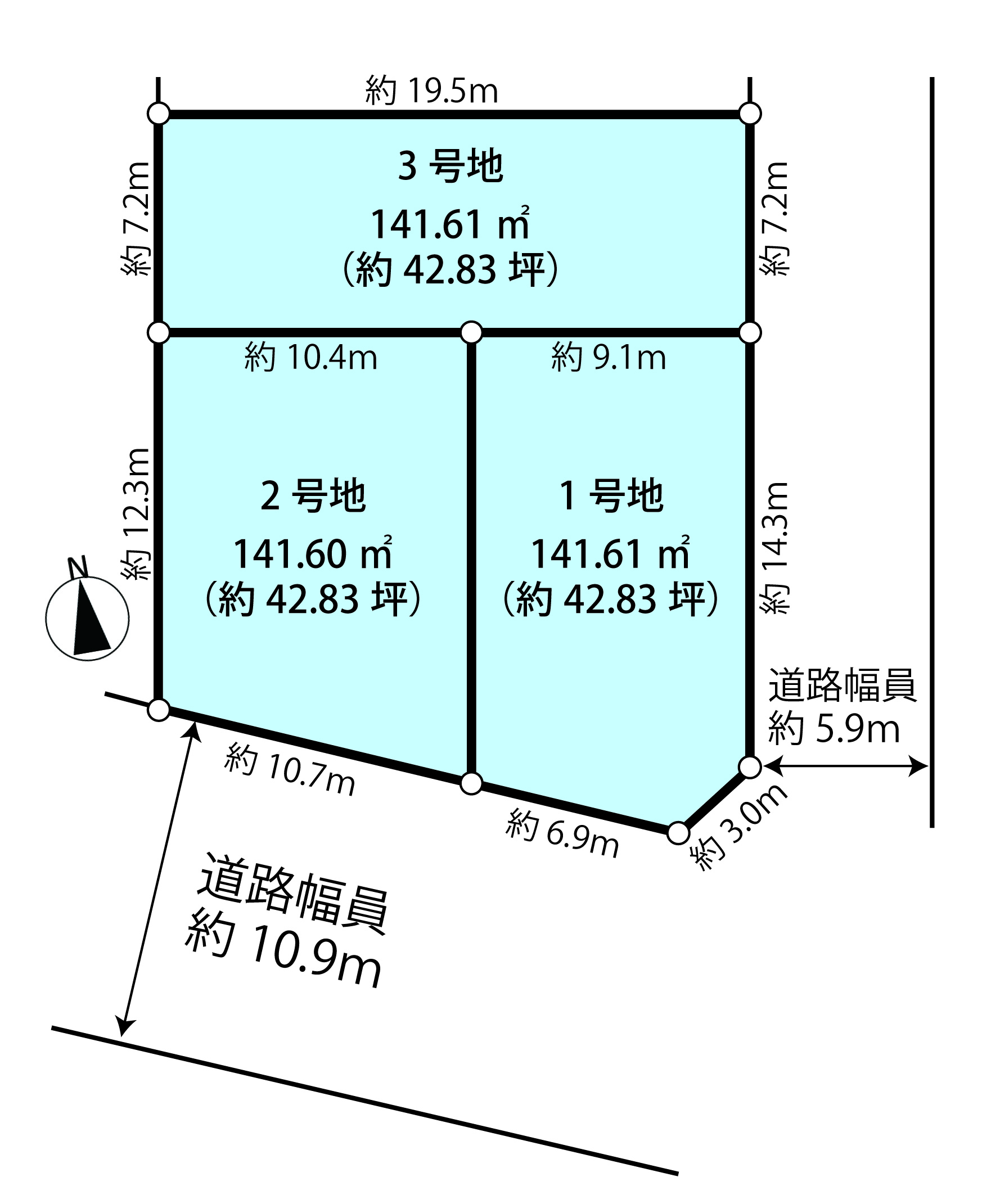 地目 | 宅地 | 接道状況 | 二方(角地)(南 公道 10.9m 間口6.9m 東 公道 5.9m 間口14.3m ) |