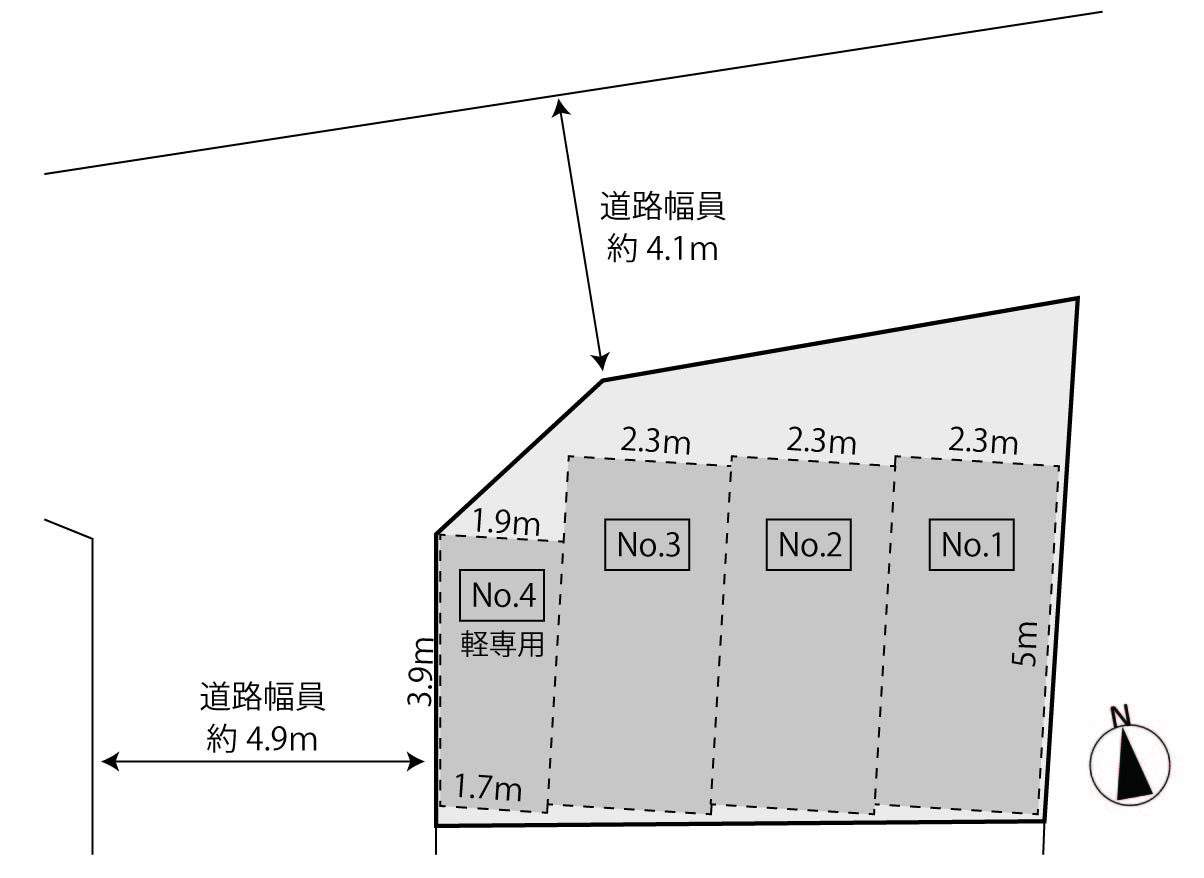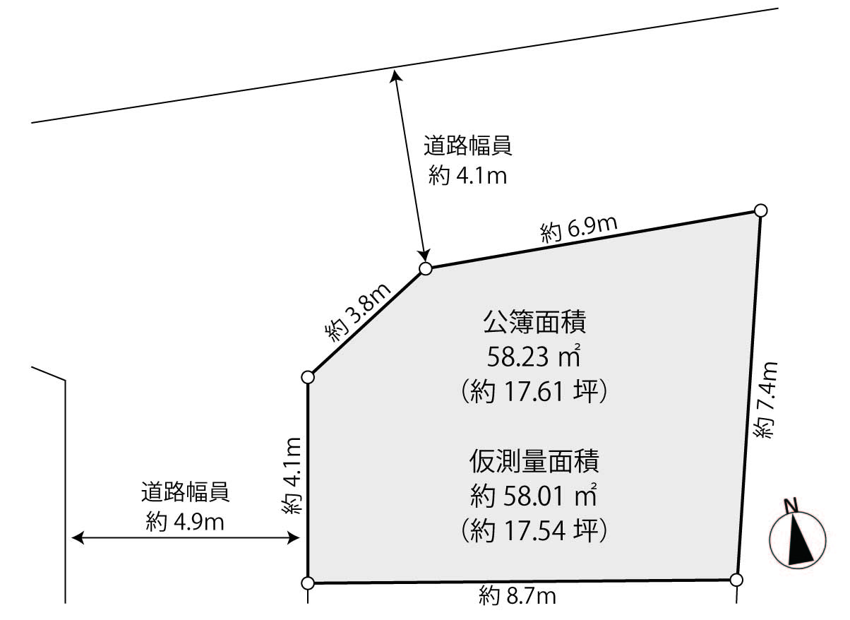 西側公道:幅員約4.9m/間口約4.1m