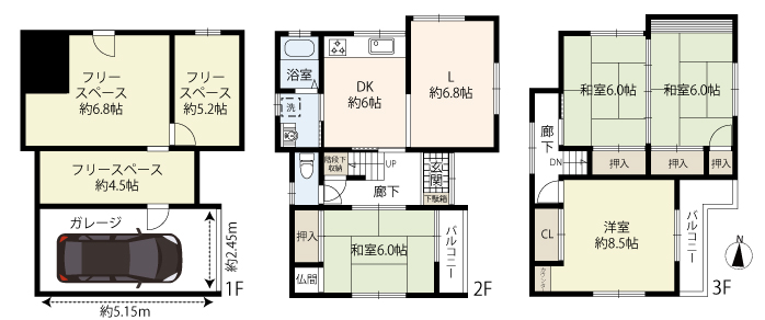 幅2.45m/奥行5.15m/高さ1.6m
