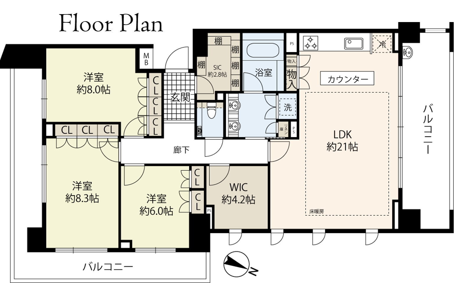 全室バルコニーに面しており、