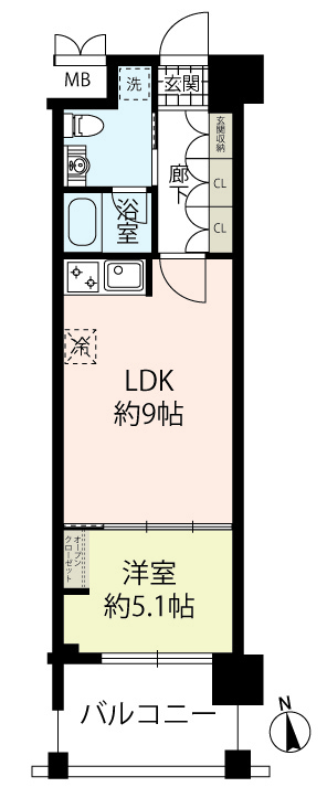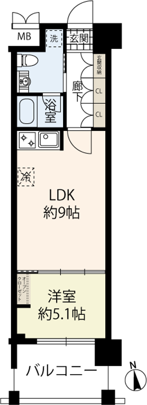 専有面積34.23m2(約10.35坪)間取り1LDK